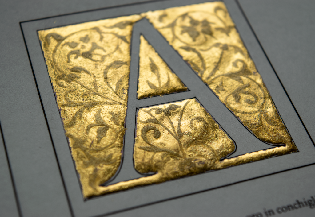 Ukážeme si výrobu mušlového zlata a také různé styly zdobení zlatého pozadí v iniciálách.